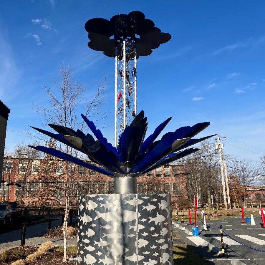 She is a public sculptor based in Rhode Island whose work brings together art, architecture, and the natural world. Using materials like stainless steel, aluminum, bronze, and ceramics, she creates pieces that feel both precise and organic at the same time.