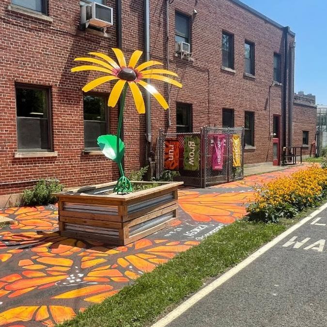 Her freehand botanical murals can already be found across Providence, and they feel like an extension of the gardens and green spaces around them. On the Greenway, her work continues that idea, bringing plant forms into places you might not expect.