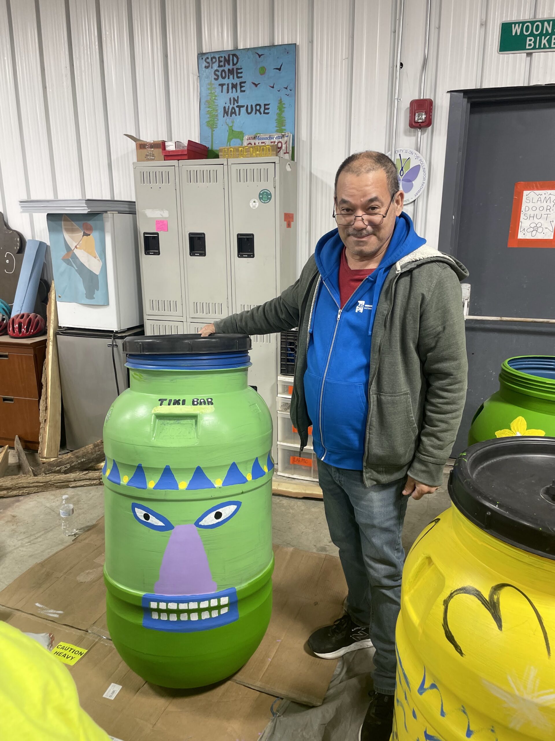 This workshop was about function and creativity. Participants painted their barrels, giving each one a personal touch while keeping the water cool since hot water encourages bacterial growth. We used repurposed pickle barrels, and a special thanks goes to Rachel’s Table for donating eight 55-gallon, four-foot-tall barrels that will be installed at residences throughout the lower Woonasquatucket watershed.