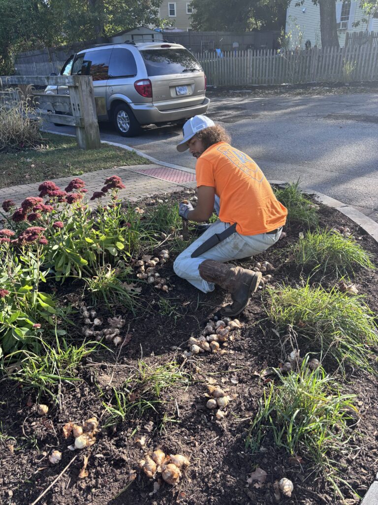On Saturday, October 18, 2025, the Woonasquatucket River Watershed Council (WRWC) hosted a joyful volunteer day at Cricket Field in Johnston, planting daffodil bulbs and caring for the park’s greenery. Over 2,500 daffodil bulbs were planted alongside the outer fence and throughout the park’s shrubbery, promising a bright spring display.