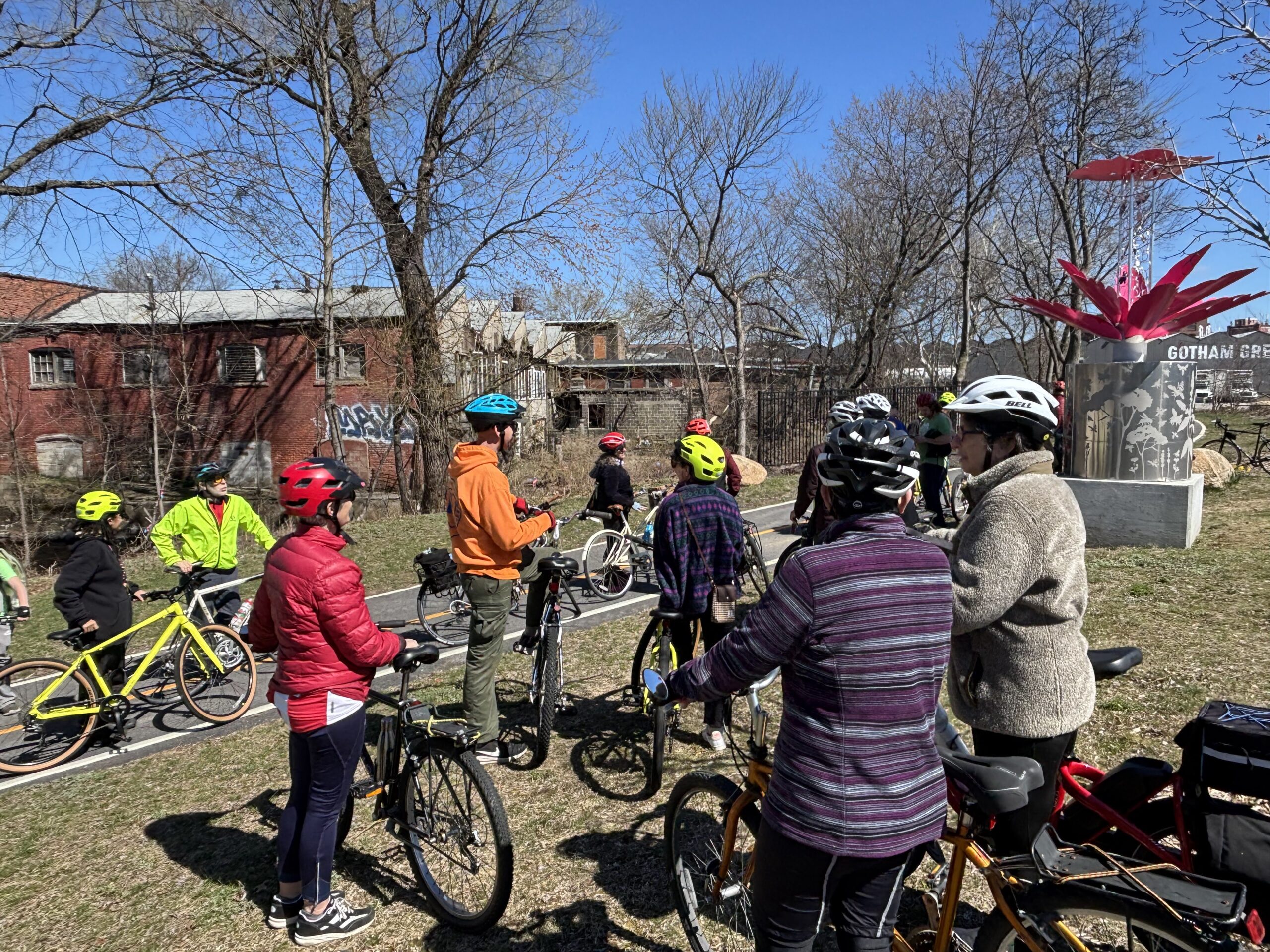 Last Saturday, we gathered behind Gotham Greens with 55 community members for to get outside, celebrate art, and enjoy the Greenway in bloom with a community bike ride.