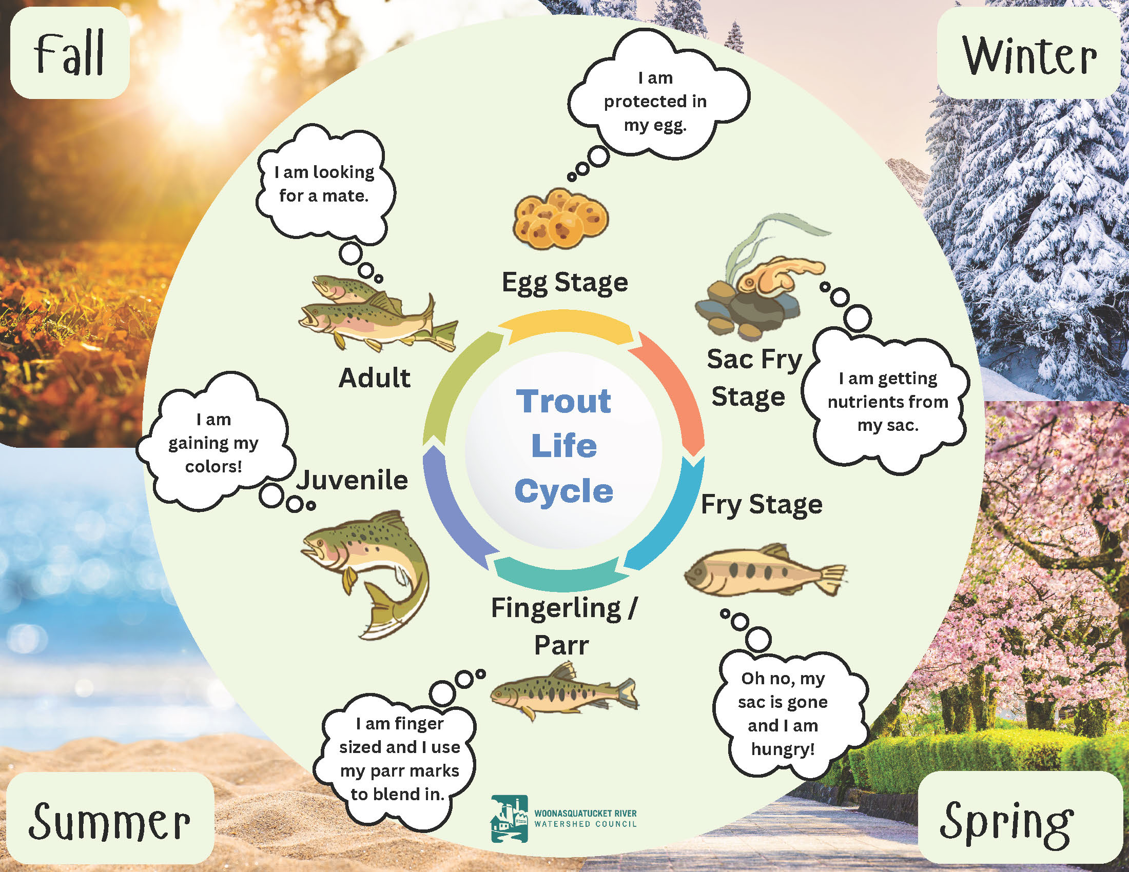 Over the next several months, the students will watch their trout grow, learn about the life cycle of brook trout (see Figure 1!), and track how they go from eggs to fry, then fingerlings. In about five months, these fingerlings will be ready for the big adventure: a field trip where students release them into the wild. From there, the fish will continue their life journey, maturing through their final stages and contributing to healthy local ecosystems.