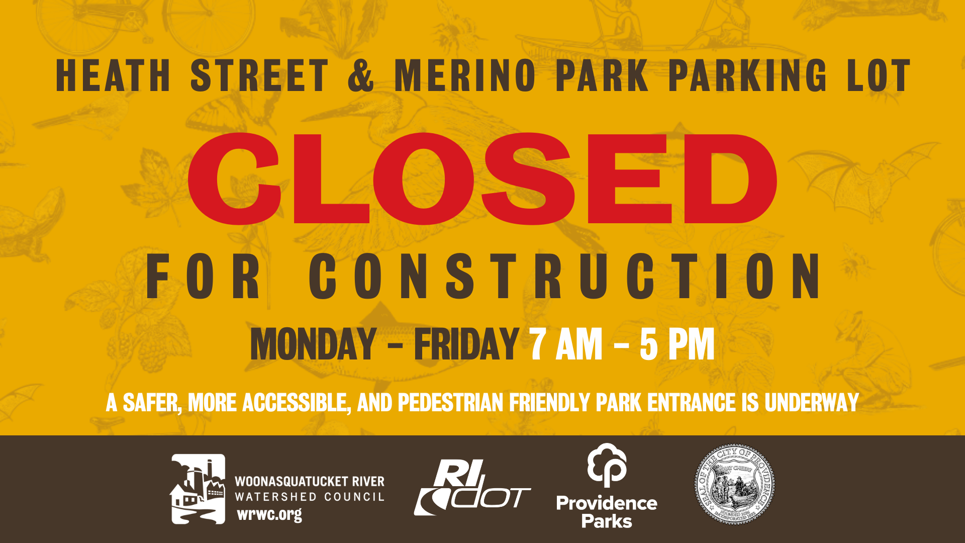 Construction on the first phase of the Heath Street Greenway Project will begin shortly. During this stage of work, Heath Street and the Merino Park parking lot will be closed to vehicles Monday through Friday from 7 AM to 5 PM. On-site signage will be posted to help guide visitors.
