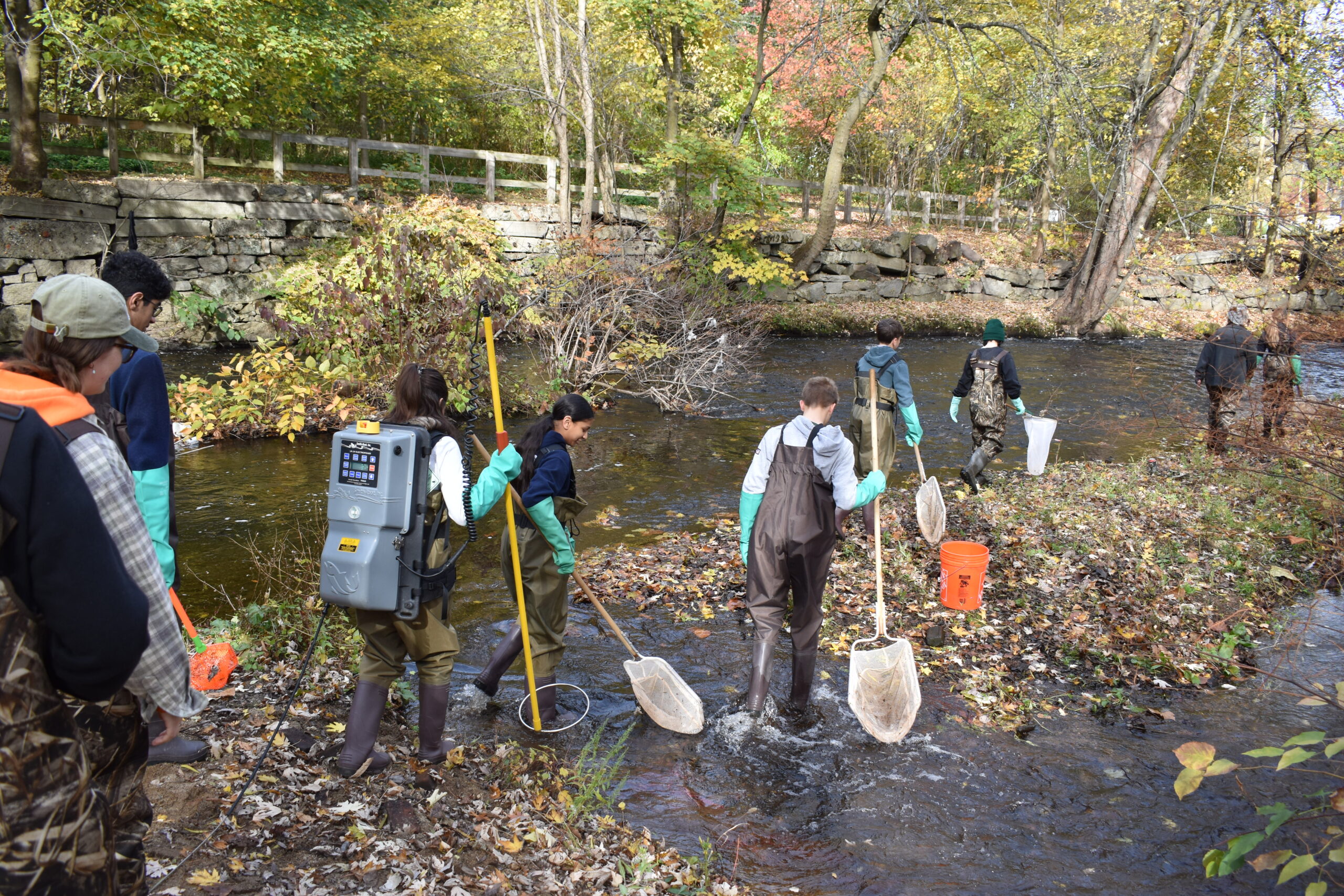 Exploring Urban Biodiversity with Wheeler School: Electrofishing on the Woonasquatucket